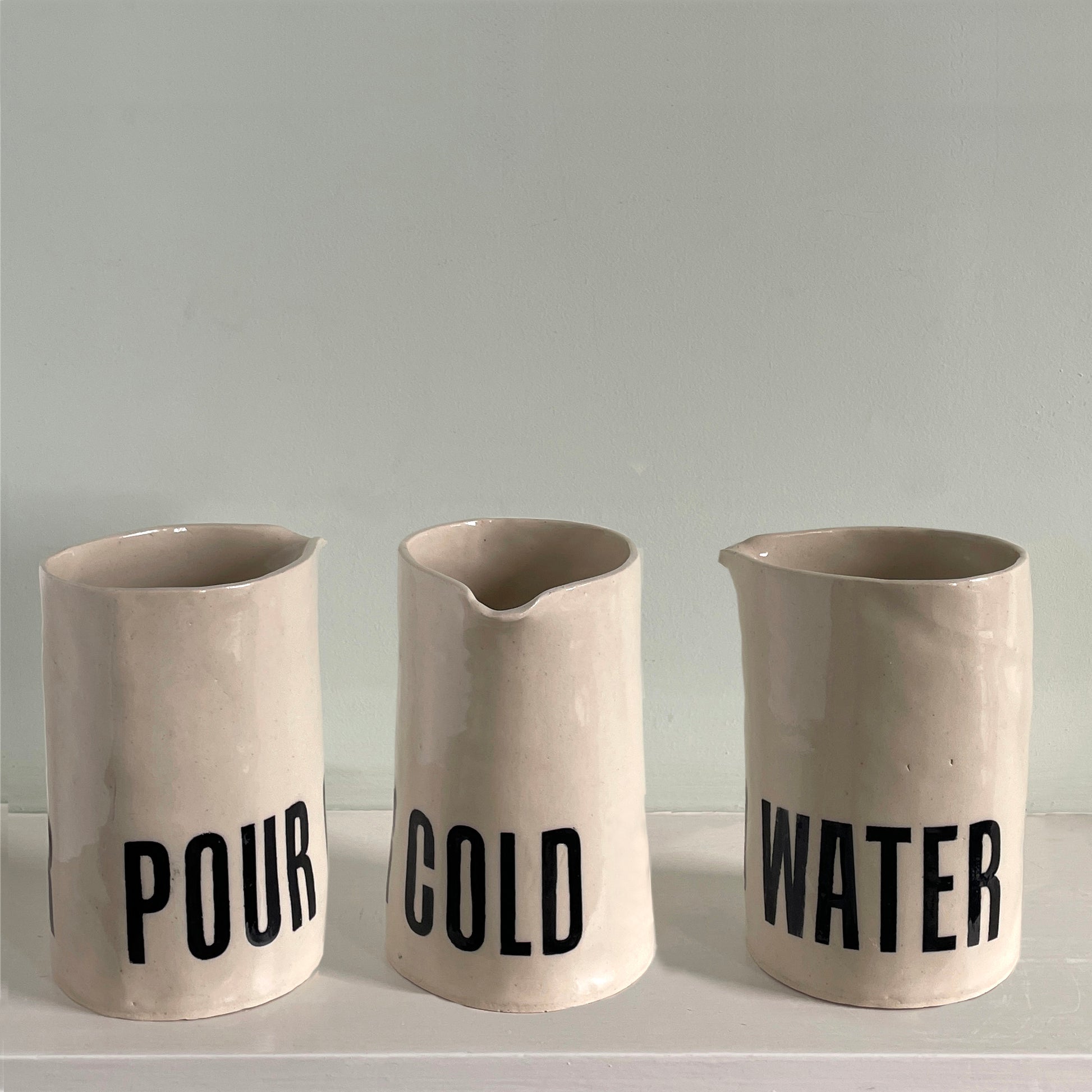 Each jug is unique due to the nature of hand making and the unpredictability of the kiln firing. They are sturdy, functional and dishwasher proof and sometimes display characteristic minor imperfections.